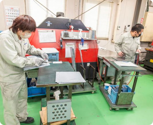 JIS・ISO規格に基づく検査体制で、1個でも300個でも同じ高品質を実現。工程ごとの実測管理で±0.1mmの精度を安定供給を行っています。